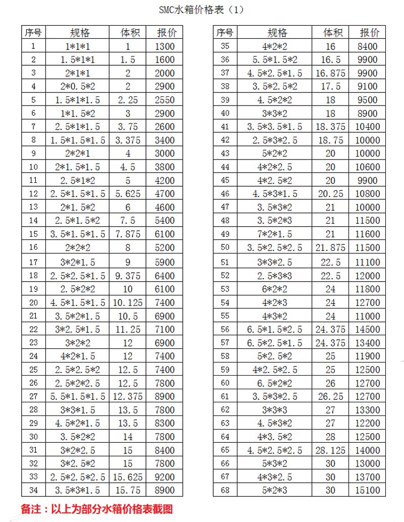 玻璃鋼水箱價格表